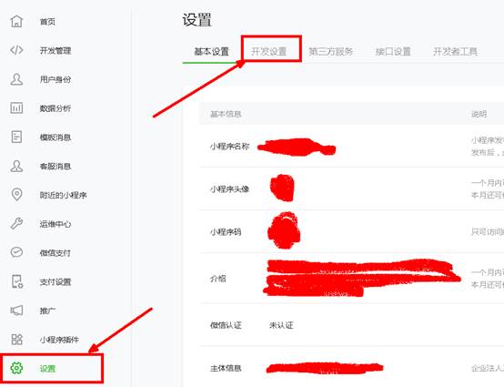 3、 進(jìn)入開發(fā)設(shè)置(APPID是上傳發(fā)布必備id)