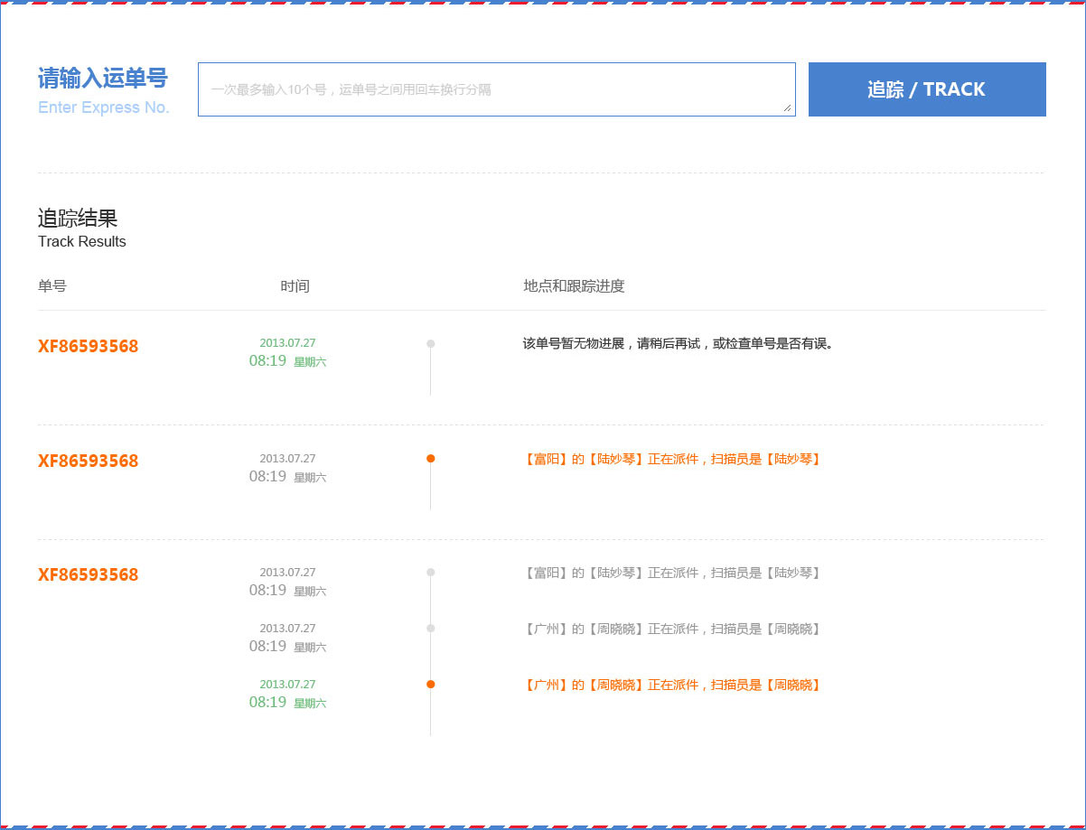 正常情況會返回運單的查詢內(nèi)容,如果查詢結(jié)果為1-2位的數(shù)字,則報錯了,根據(jù)如下代碼了解報錯內(nèi)容: