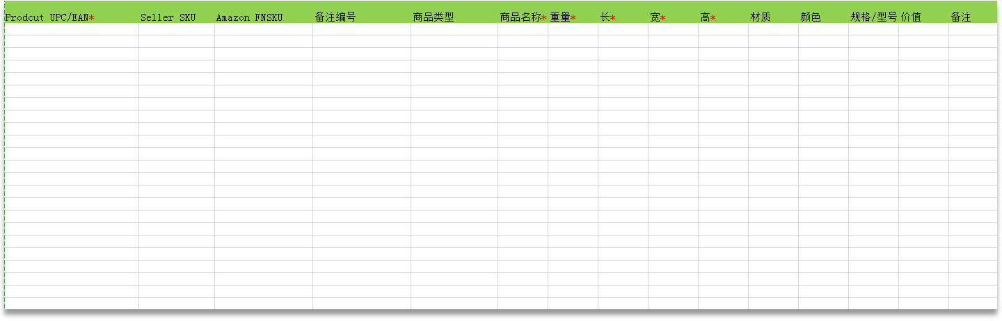 ·打開模板表格,帶*的為必填項(xiàng),否則無法導(dǎo)入。