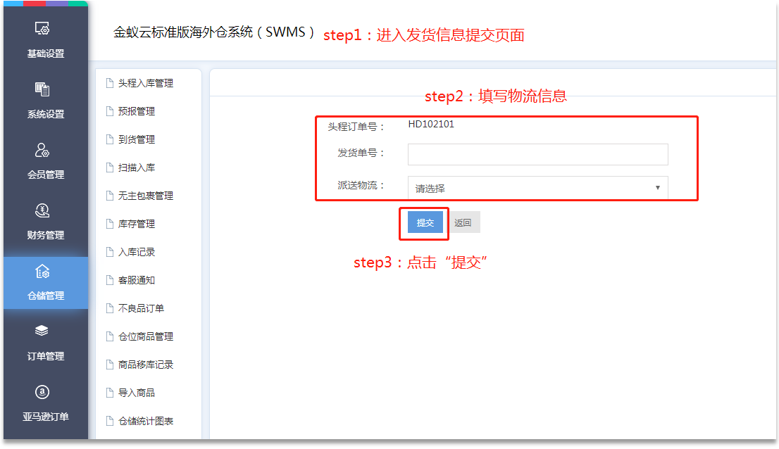 ·會員提交頭程訂單后,需在【倉儲管理】-【頭程入庫管理】進(jìn)行處理,管理員在待審核訂單處理可選擇提交/修改/取消。