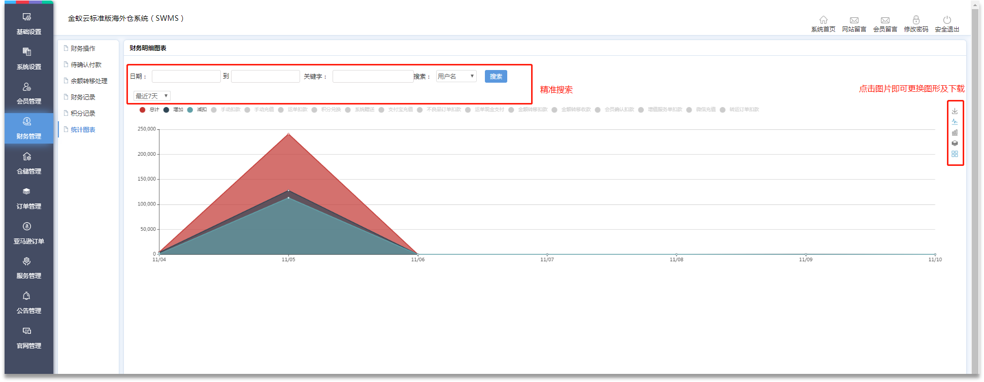 ·管理員可在【財(cái)務(wù)管理】-【統(tǒng)計(jì)圖片】中查看并分析情況。