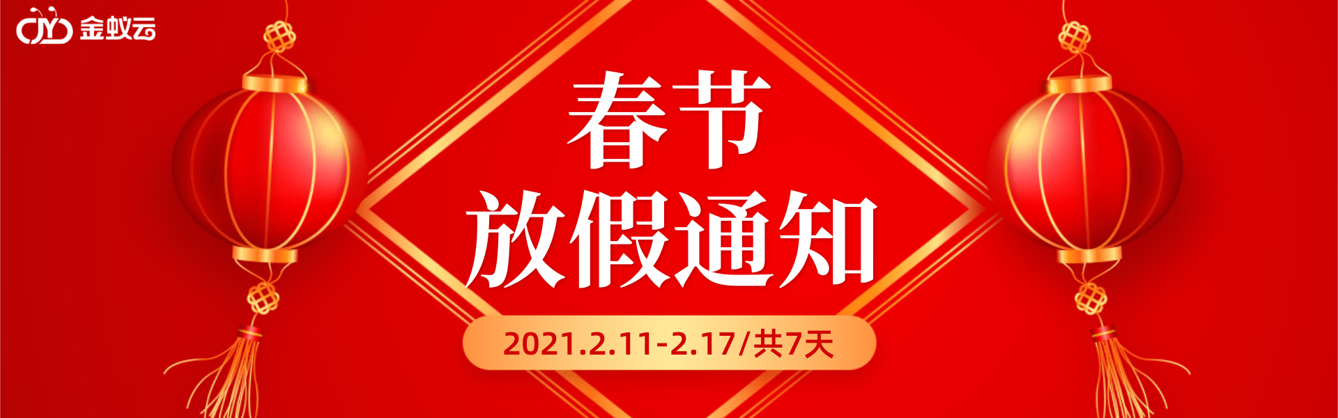 新春的鐘聲即將敲響,伴隨著冬日的暖陽,滿懷喜悅的心情2021年春節(jié)即將到來,金蟻云全體同仁在此深深感謝您長期以來的支持,并向您致以最誠摯的節(jié)日祝福與問候!