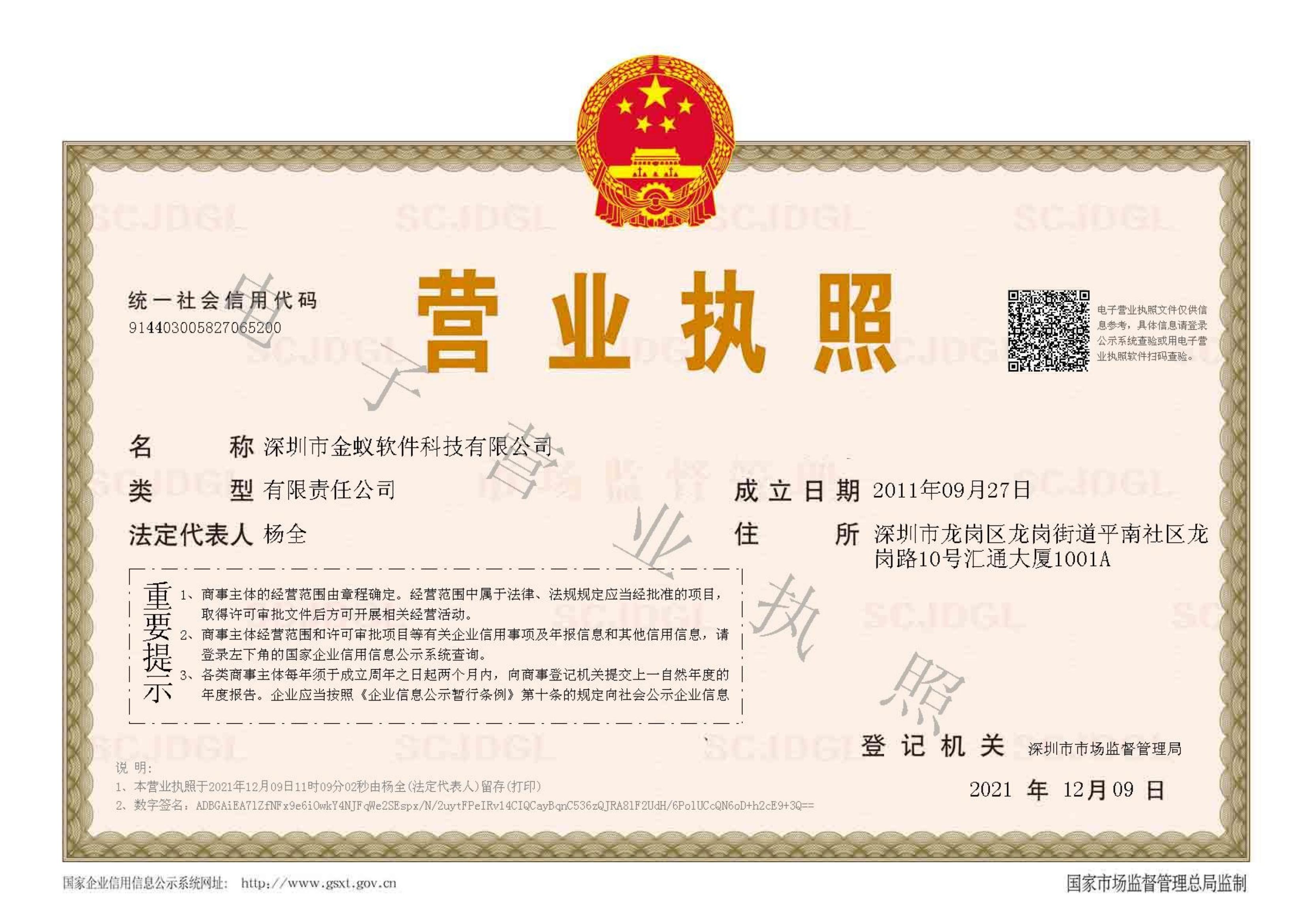 我司深圳市全景世紀科技有限公司因長遠發(fā)展需要,在2021年12月9日通過工商變更,現(xiàn)公司名稱正式變更為深圳市金蟻軟件科技有限公司。以后各位與我司間的業(yè)務(wù)往來,涉及相關(guān)名稱變更事項,煩請協(xié)助辦理相關(guān)變更: