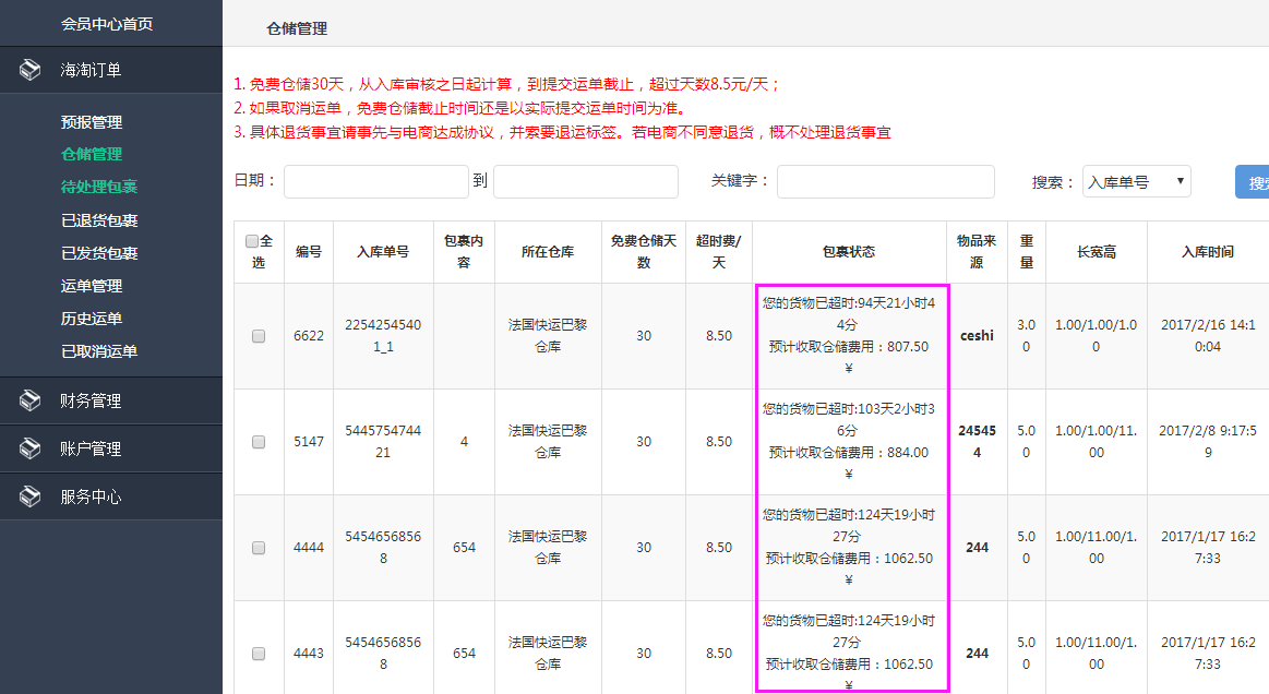 針對(duì)帶有簡(jiǎn)易倉(cāng)儲(chǔ)功能的海淘,一般有倉(cāng)儲(chǔ)天數(shù)限制,可針對(duì)每個(gè)倉(cāng)庫(kù)設(shè)置多少天免費(fèi),超出多少元/天,按超出的天數(shù)設(shè)置費(fèi)用;